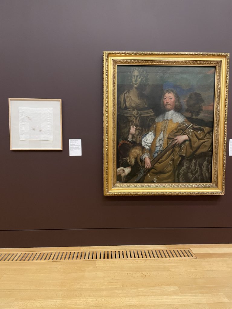 I was especially intrigued by her abstract methods, by taking something out of everyday life and history and giving it a new meaning. She takes mundane and dead things such as napkins and gives them a complete new life by using them to polish silver from famous people in history, such as Stolen Thunder Tarnish from Charles I’s Spurs 1998 that I stumbled upon on my walk around the museum after looking at the exhibition. To see the napkin next to a painting of Charles I gave the napkin a whole new meaning. But looking at it with out knowing you feel like you are looking at a beautiful abstract pencil drawing.