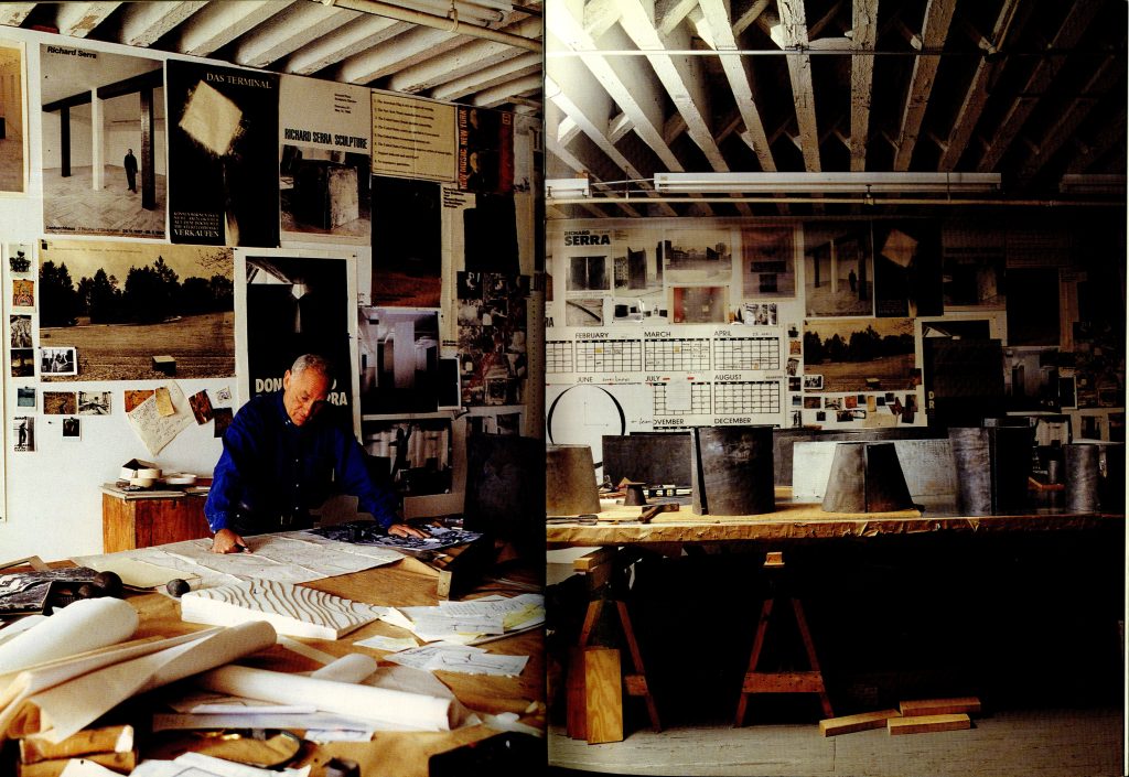 Richard Serra is known for his large scale artworks, so I thought it was interesting to see how he works in his studio. He’s creating small scaled models, and his studio is a mess in contrast with his art work. I think it’s a good example of how his mind works. He needs to explore and he needs space, as he works with different venues, material and interaction with the public. Although my client prefers a clean space I think there is some organised chaos in this studio..